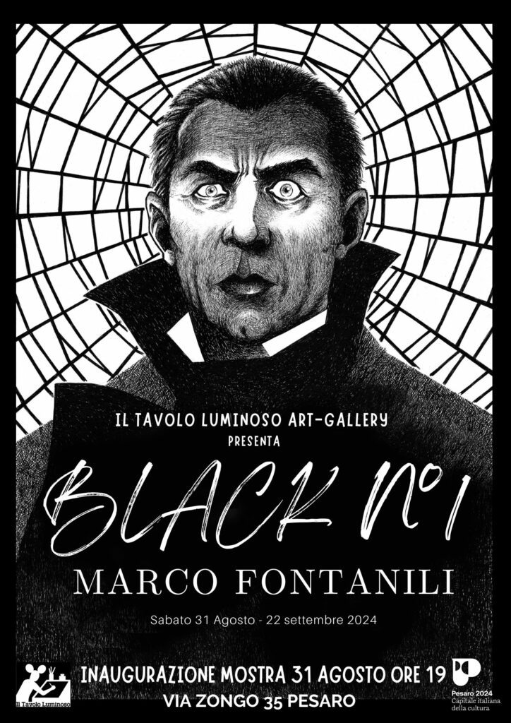 Black N# 1 rappresenta una celebrazione per la sua passione per l’horror, mostri classici disegnati minuziosamente con la china, figure iconiche come Nosferatu e altri miti dell’orrore faranno capolino dalle pareti della galleria ll Tavolo Luminoso per trasportarvi in ambientazioni da film muto e del genere horror, una mostra che gli amanti del genere non possono saltare.