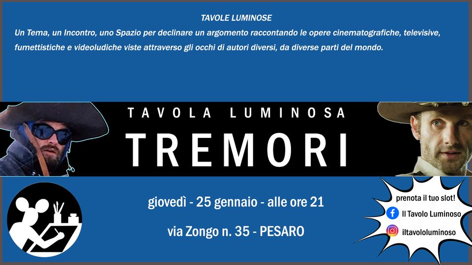 Carpenter, Cinema, Comics, Fumetto, Gaming, Gekika, Godzilla, La Cosa, La Tavola Luminosa, Letteratura, Manga, Paura, Rumble, The Walking Dead, Tremori Tavola Luminosa: Tremori.