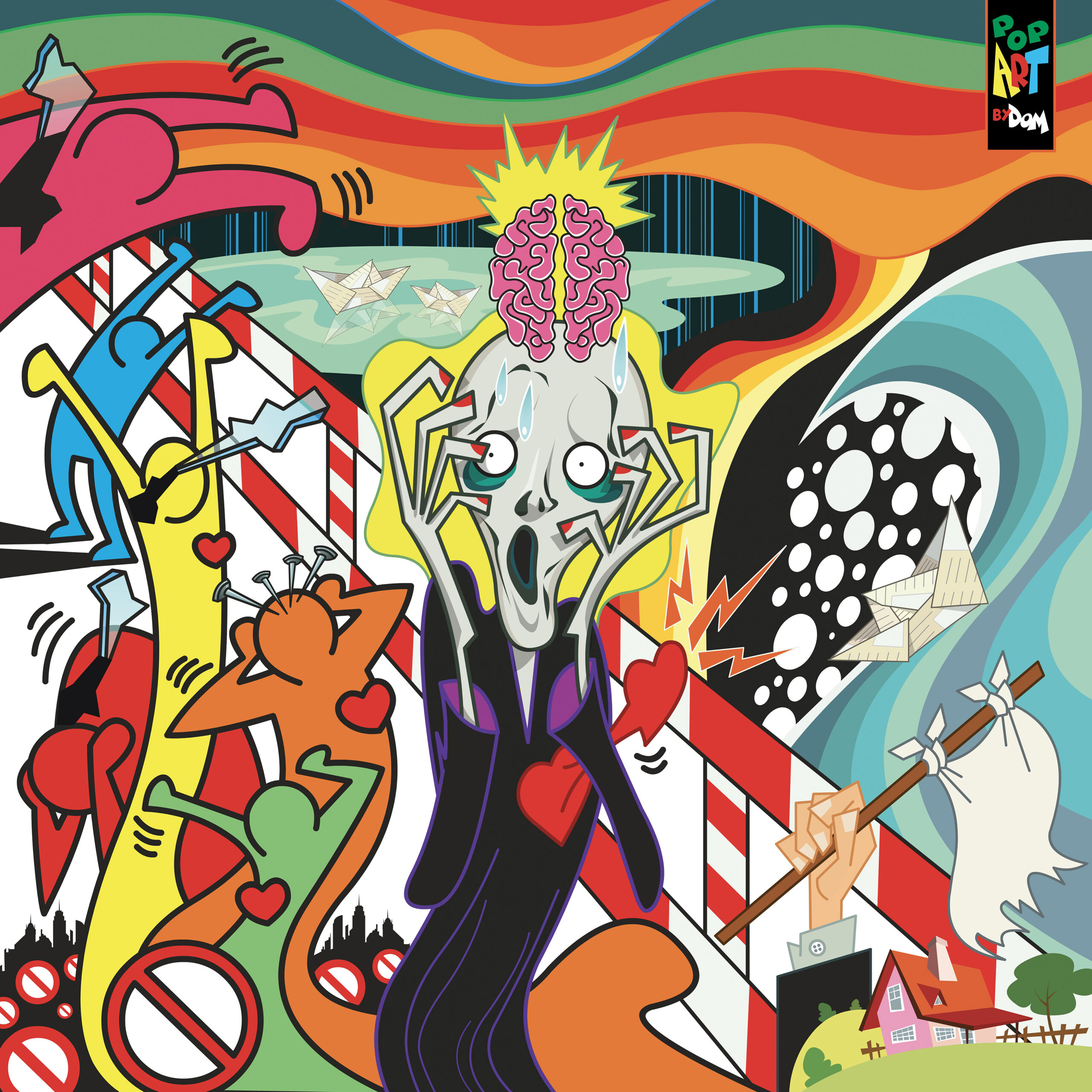 In questo caso prendendo come punto di riferimento il lavoro di Munch e altri elabora quest’opera, riportata in segui to su tela. La stampa è stata effettuata per essere esposta alla mostra Evoluzione di un Tratto: Il Segno del Dom.