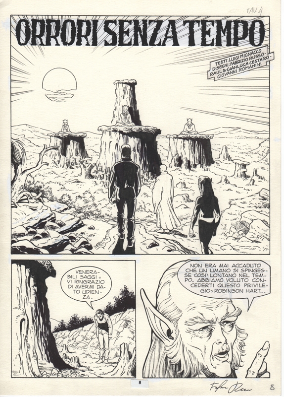 Jhonathan Hart è un personaggio creato graficamente da Fabrizio Russo che ha realizzato anche lo svolgersi delle sue avventure. La tavola originale è realizzata in china su carta (pagina dei titoli). L’autore firma la pagina in basso a destra.