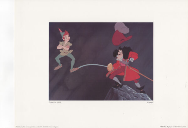 The Art Group Limited London è una galleria tanto famosa da essere riuscita a concordare un contratto sulle sue stampe con soggetto Disney. In questa stampa tratta dal cartone animato di Peter Pan del 1953 vediamo il combattimento tra Capitan Uncino e Peter Pan.